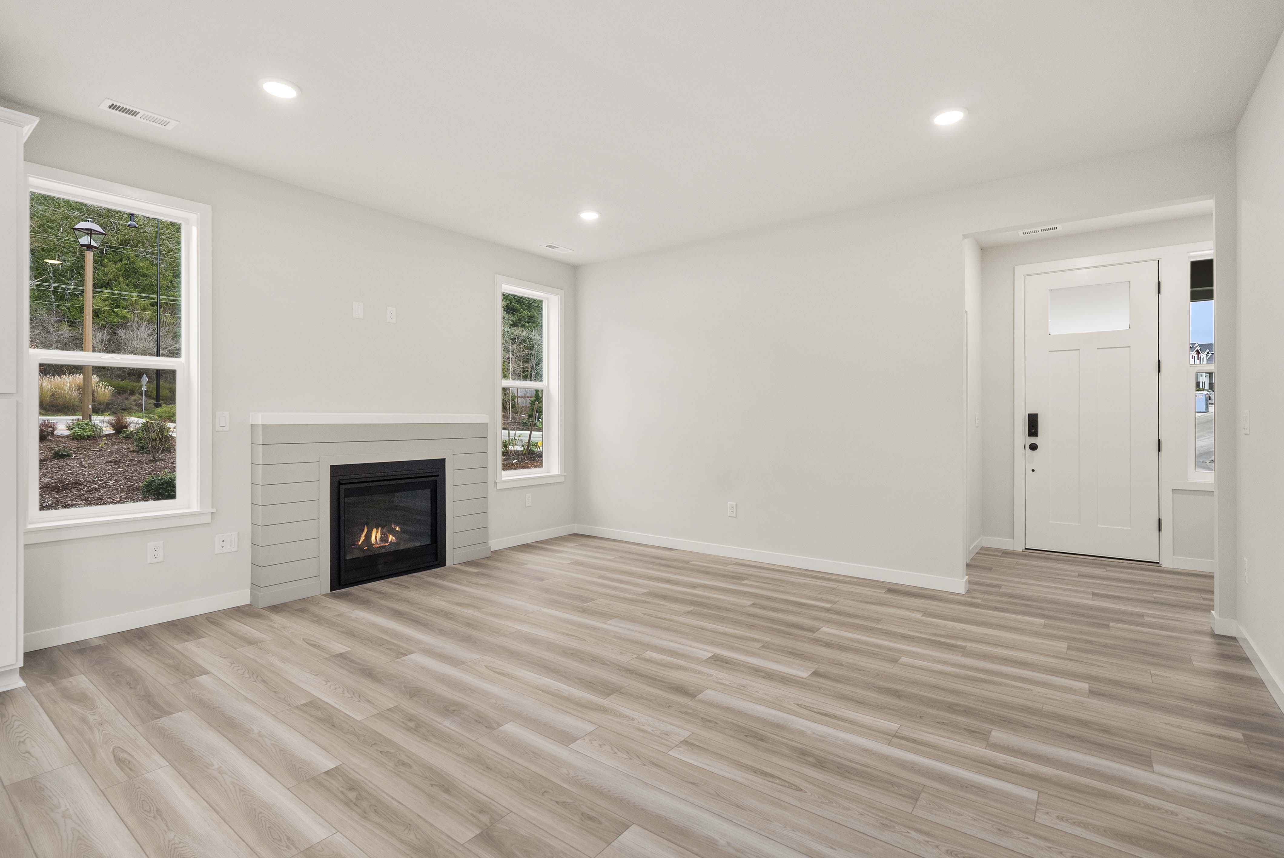 Additional included features like two-bay garages, 9’ ceilings on the main floor, luxury vinyl plank flooring, Ecobee® Premium Pro thermostats, and Schlage® electronic front door locks elevate everyday living. Select homesites also offer optional covered patios and open railings for added comfort and style.