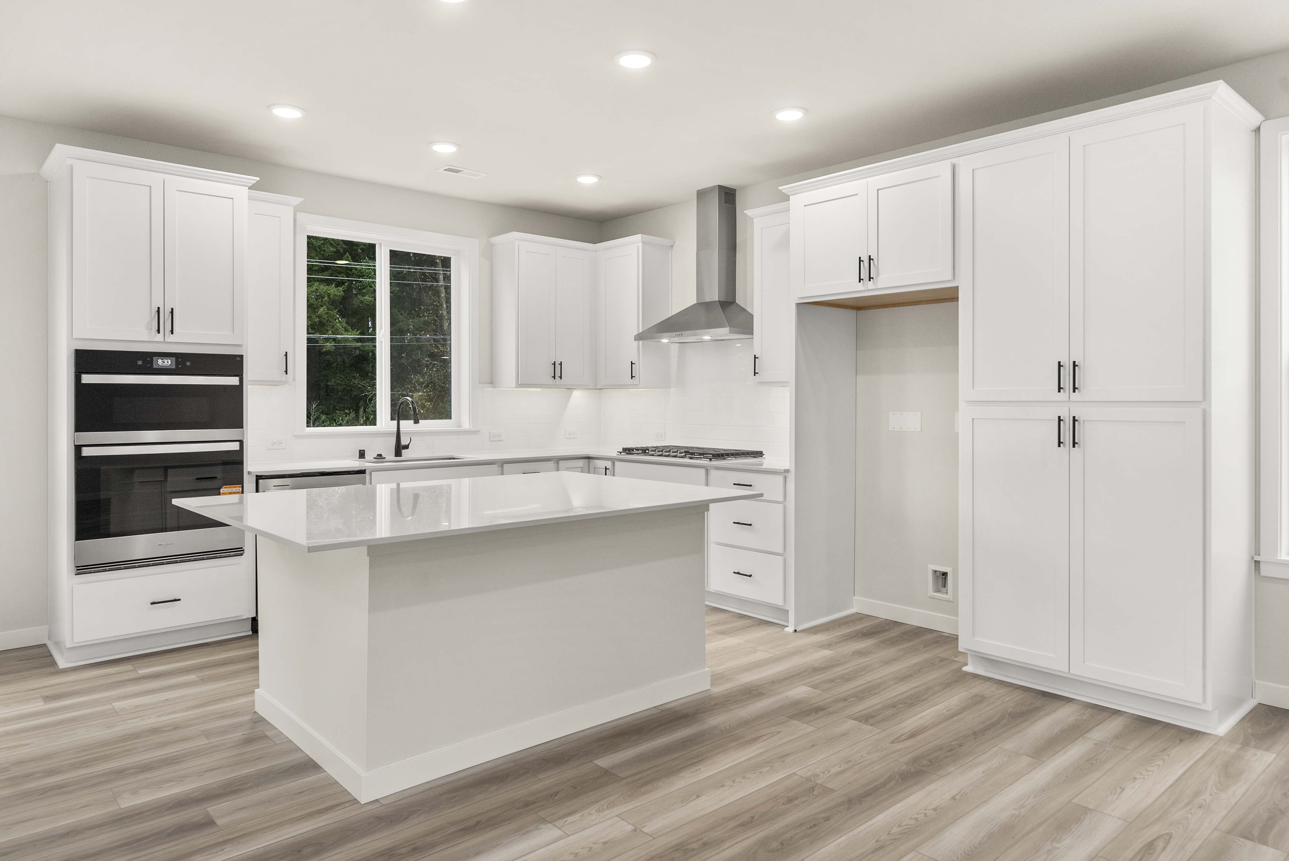 Showcasing thoughtfully designed two-story floor plans, these homes highlight modern features that blend comfort and innovation. Enjoy stylish quartz countertops in the kitchen and primary suite, premium stainless-steel appliances—including a electric cooktop with a 36” wall-mount range hood and smart Wi-Fi oven/microwave combo—plus 34.5-inch cabinets with molding, soft-close doors, pulls, and under-cabinet lighting.